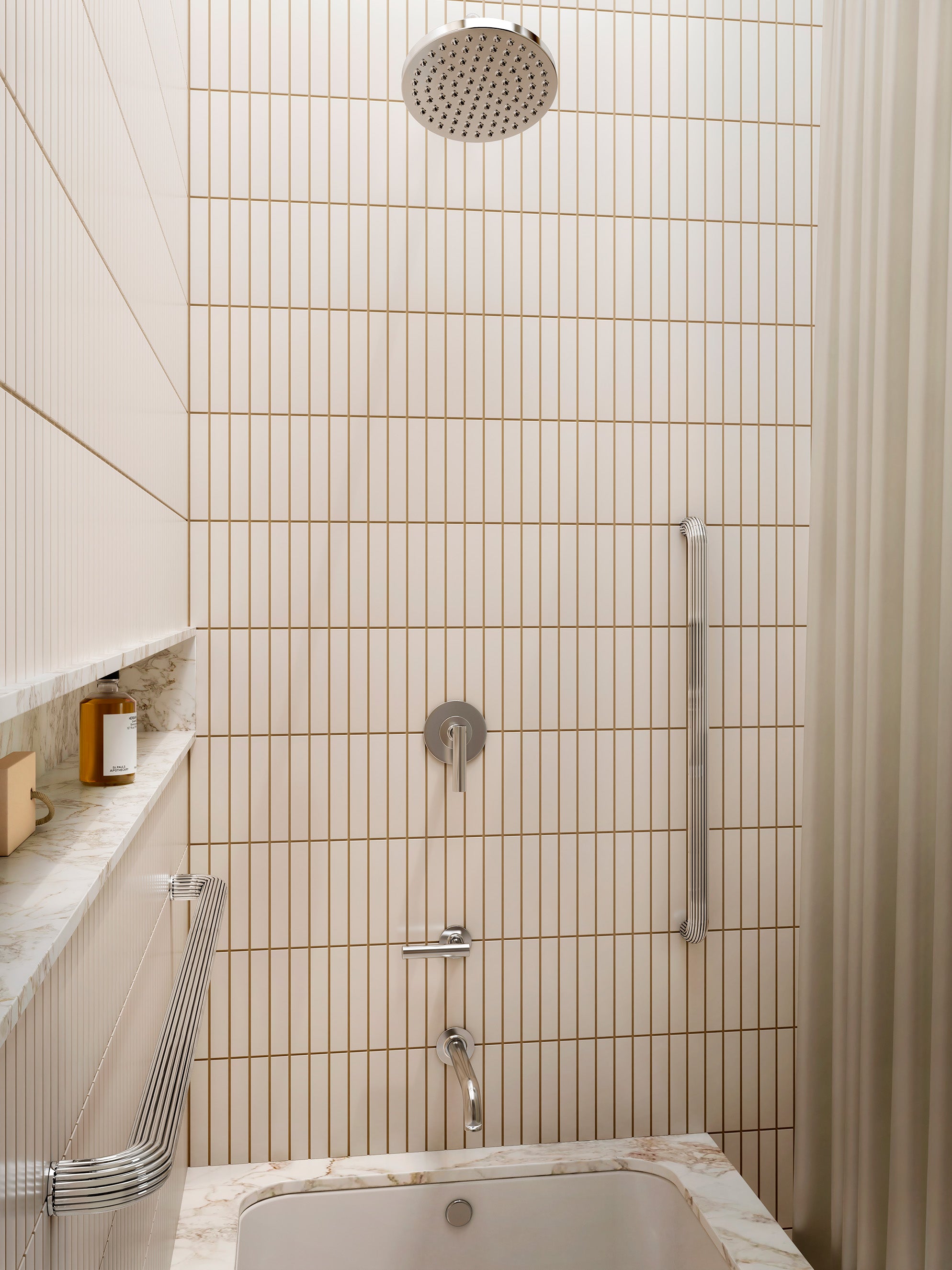 The grab bar amplifies an interior design vision while providing the required safety & support.